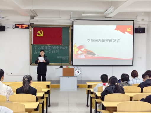 领学结束后,互动环节氛围热烈。党员同志沈康结合自身思想淬炼与专业实践经历,分享了学习党的二十届四中全会精神的深刻感悟,明确表达了立足专业岗位履职尽责、在智检领域主动担当作为的坚定决心;入党积极分子金宏、伍谷依次发言,围绕学习收获、思想成长及未来践行方向展开深入交流,纷纷表示要将理论学习成果转化为学业进步、科研创新的实际行动,展现了新时代青年向党组织靠拢的坚定信念与昂扬向上的精神风貌。