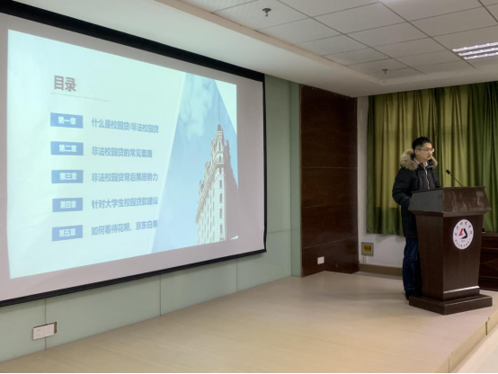 工作人员向同学们发放了安全宣传手册,主讲人结合具体案例,通过ppt以图文并茂的形式向同学们传授如何树立正确的消费观念,合理消费。通过讲解“非法校园贷”的危害和防范措施、个人信息保护以及防范网络和电信诈骗措施等,让学生们充分了解到保护证件、卡、安全介质等个人金融信息的重要性。同时,银行专家还围绕非法校园贷和电信诈骗两类典型校园易发案件,以“高息诱惑勿轻信”“遭遇诈骗不用愁”为主题,重点就网上兼职、校园贷、教育退费的诈骗方式进行了简要介绍,就电信诈骗的概念、欺诈信息传播途径等进行了详细讲解,以帮助大家进一步熟练掌握金融工具,自觉远离“校园贷”“现金贷”“非法分期贷”“无抵押贷款”等花样繁多的不良网络借贷,增强对有害网络借贷业务的甄别和抵制能力。银行专业人士还分享了如何防范高息诱惑与电信诈骗的小妙招,以帮助学生有效应对诈骗情形,并郑重告诫在校学生们要严密保管个人信息及证件,保护好自己的隐私。