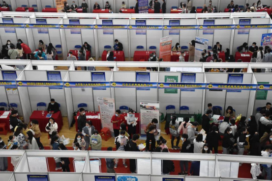 10月14日下午1时30分,招聘会正式拉开帷幕。现场人山人海、求职气氛炽热非常。