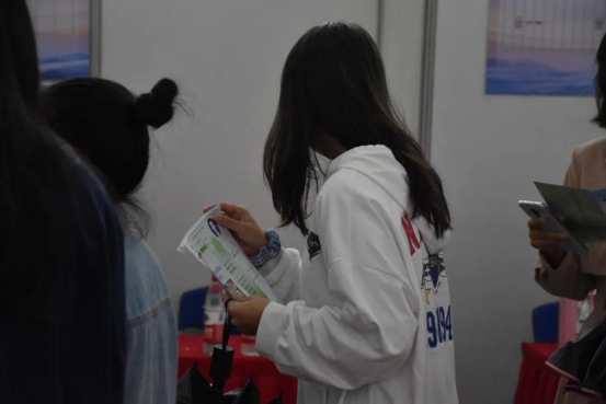 同学们在招聘会中满怀着憧憬投出的一份份简历,是三年多来日夜努力的证明,也是手中开启未来全新生活的一块敲门砖。在招聘现场,许多同学表示希望能将学习的精神延续到实习工作中,在这一段初入职场的时间里,熟悉职场环境的同时提升专业知识的“转现率”,学以致用,做行动上的“巨人”。