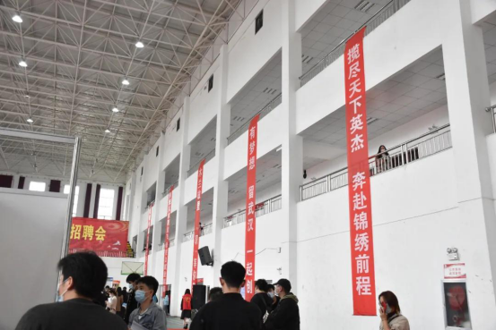 据疫情防控常态化工作要求,本次招聘会到场人员全程需佩戴口罩,扫码进出体育馆。
