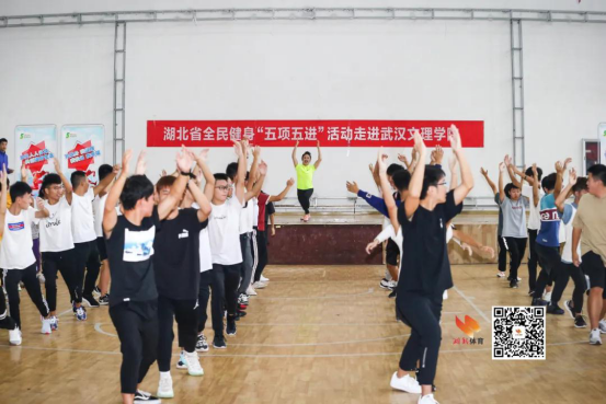 全民健身“五项五进”活动是我省“健康湖北 你我同行”全民健身战疫情系列活动之一,该活动自五月份全面启动以来,已在全省13个市州、103个县市开展1000余场线上线下教学活动,在接下来的一个月里,省体育系统还将陆续组织世界冠军、运动专家走进机关、社区、村庄、学校、企业,采取现场教学的形式,普及推广太极拳(含太极剑)、八段锦、广场舞、健身操(含啦啦操)、广播体操等五个项目科学健身知识和健身方法,推动全民健身生活化。