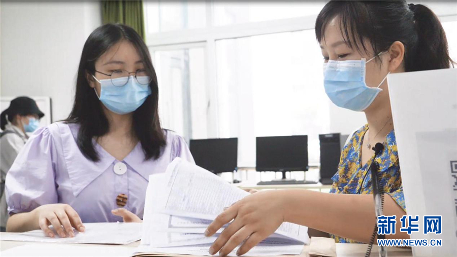 张晓在一站式大厅办理毕业生离校手续 新华网 刘生辉 摄