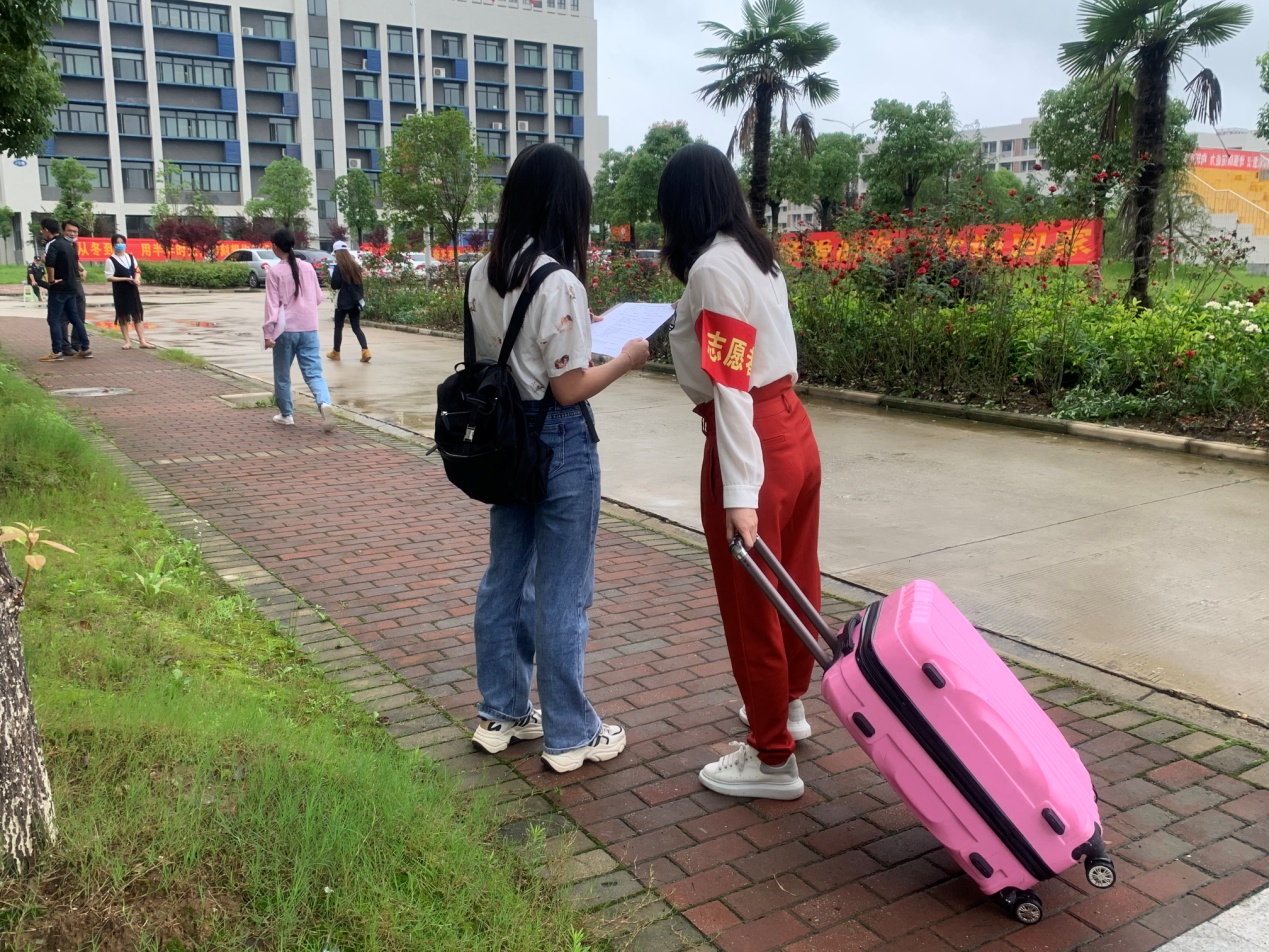 因为学生们到达学校时间有差异,他们来不及吃饭,在寝室楼下,在校园路上,冒着大雨来回奔波。他们帮忙打包行李、搬运物品。满满一车的行李,被子、行李箱、锅碗瓢盆....老师们统统包下,把学生打包好的离校行李从宿舍搬到家长们的车上,他们才放心。从进入校门到登记取表,从宿舍搬运到食堂就餐,他们穿梭在校园的每一个角落里,他们满脸汗水,但依旧笑容灿烂。