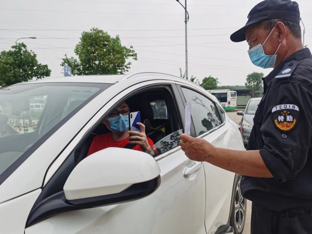 由教职工扮演的毕业学生来自全国各地,返校方式各不一样,把好入校第一关至关重要。演练中,返校毕业生到达校门口后进行初步的人车分流,车辆经保安人员引导逐一排队进行扫码验证,通过后方可进入校园。