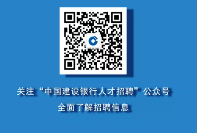 请关注中国建设银行人才招聘公众号,全面了解招聘信息。