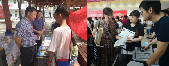此次招生工作学院采用了多个场地同时进行的模式,带队老师和学生分成若干小组,党委书记杨知勤、副校长万波和副校长陈建华等一行分别前往华中师范大学和咸宁一中多方宣传学校特色办学及高质量就业,吸引了众多考生和家长的关注。