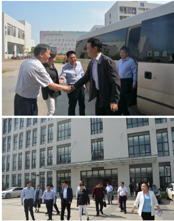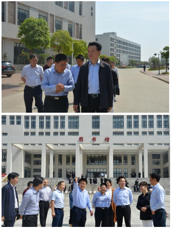 2019年5月10日黄陂区人大常委会副主任魏益琨,区人民政府副区长吴立群等一行带领区教育局、人社局、文旅局、武湖街、区一中等领导到我校参观调研。江汉大学文理学院投资人张芾,学校董事长袁戴名,校长崔东,党委书记杨知勤等领导热情接待并陪同。