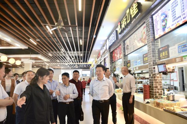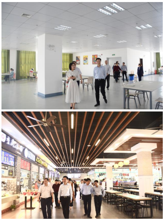 魏益琨副主任一行在张芾主席以及学校领导的陪同下参观了学校食堂、教学楼、图书馆以及学校教学楼等教学生活设施。领导们对学校食堂的食品储存区、就餐的场所等方面进行了认真视察,并亲自查看了留样柜、消毒车、观察了每个窗口的菜色。魏益琨副主任对文理学院食堂食品安全状况给予了充分肯定,特别是对学校食堂菜品的丰富多彩给予了高度评价。路经教学楼视察上课状况,为了不打扰上课秩序,他们放慢了脚步,压低了声音,安静有序的课堂也让领导们十分欣慰。
