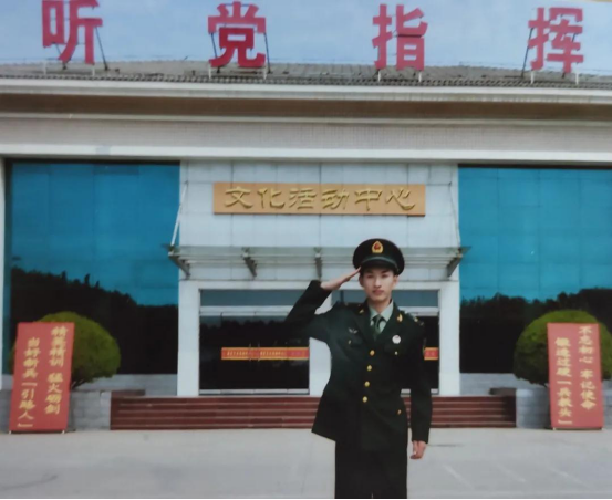 2019年退伍后,他继续肩负着军队的使命,为学校贡献自己的一份力量,再度身着戎装,重回沙场,积极加入了20级新生的军训活动。他选择了军训,继续勇敢地锤炼自己、不畏艰难、锻炼坚强的意志。