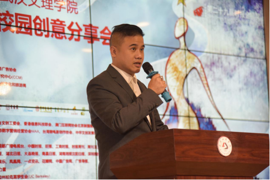 接下来就到了本次活动最重要的分享环节,本次活动以“民族自信”为主题,创意讲师李丹通过一段疫情期间所拍摄的视频将我们带入了主题的中心。分享会上,李丹老师与我校师生面对面交流了创意经验以及品牌故事,为大家分析了“一个字”非遗计划,“一条狗”玉林的狗肉节,“一张膜”盲人手机膜,“一个人”奖杯设计的四个案例。并且为大家展示了近年来与团队共同制作的获奖优秀作品,相信应该对同学们的创意提供了不少新的启发。