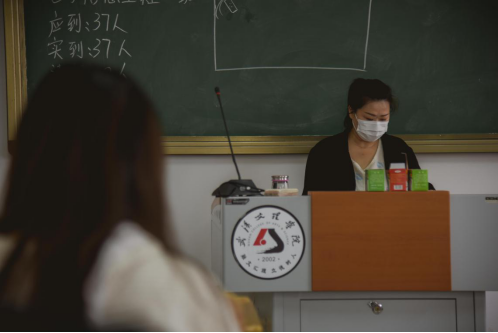 老师上课戴着口罩讲课