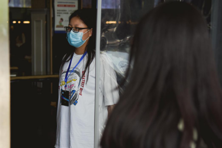 一直负责着旧食堂的出入引导和防疫保护工作