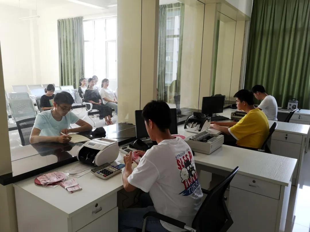 刘圣龙老师向我们展示了专为金融专业学生们所建设的银行模拟大厅,这里不仅有商业银行的现金业务、非现金业务、VIP业务,而且有完全仿真的银行环境,从排号到叫号,学生可到不同窗口办理对公司业务、个人业务,存单、存折、贷记卡一应俱全,客户、营业员、柜台组长全由学生担任。以往学生业务培训主要以课堂教学或上机练习为主,与实际接触系统操作环境并办理业务相比存在很多差别。通过在模拟工作环境中反复实战操练,可以将业务规定与业务操作有效联系起来,促进学生理论知识的掌握和实践技能的提高。这样学生在这里就可以熟悉商业银行的全部业务,毕业后在未来的银行工作中,学生对银行系统将不再陌生,驾轻就熟。
