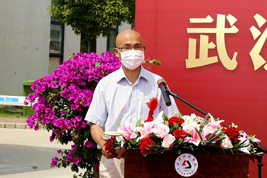 湖北省教育厅二级巡视员张建军、武汉市原常务副市长袁善腊、江汉大学校长景新华、江汉大学原校长杨卫东、黄陂区区长何建文、副区长汪利珍、武汉和润联合体管理委员会主席张芾、江汉大学副校长李卫东、江汉大学文理学院原副董事长李国其等领导出席揭牌仪式。