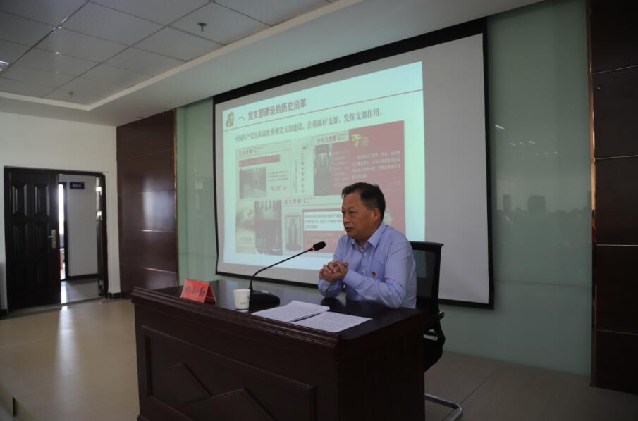 杨书记开宗明义:“根据主题教育实施方案要求,我们对基层党组织建设方面存在的问题进行了调研和整改,全校各基层党组织按照党章和有关文件要求完成了换届。为此,我们集体学习《中国共产党支部工作条例(试行)》,夯实各项基础工作,努力加强基层党组织建设”。他从“党支部建设的历史沿革”“制定和实施《条例》的重要意义”“贯穿《条例》的基本精神和新要求硬任务”以及“当前支部工作的几项重点任务”这四个方面进行了重点斛读。