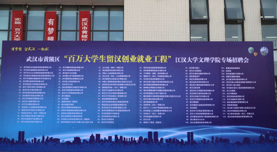 为深入实施“百万大学生留汉创业就业工程”,实现黄陂区“木兰四才”政策清单,提高高校毕业生就业质量,10月30日下午,江汉大学文理学院武湖校区和泺楼体育馆成功举办了2019年大学生专场招聘会。