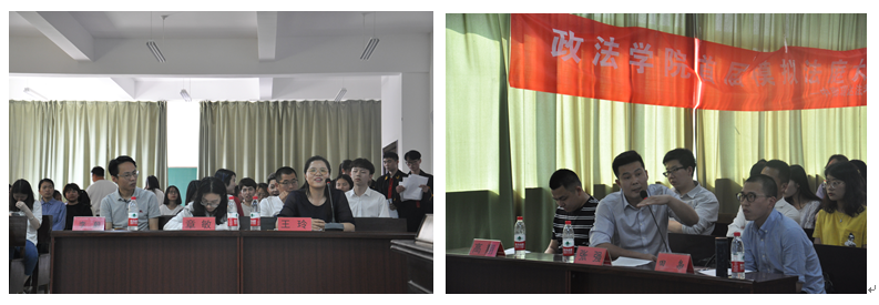 莅临本次活动的嘉宾和评委可谓是“众星云集”,评委分别是:黄陂区武湖街司法所王玲所长、黄陂区武湖街综合治理办公室文主任、湖北观筑律师事务所章敏律师,湖北中和信律师事务所张强律师,江汉大学文理学院政法学院院长李蔚副教授,江汉大学文理学院政法学院法学系田枭老师。江汉大学文理学院政法学院法学专业全体老师参加了模拟法庭大赛。