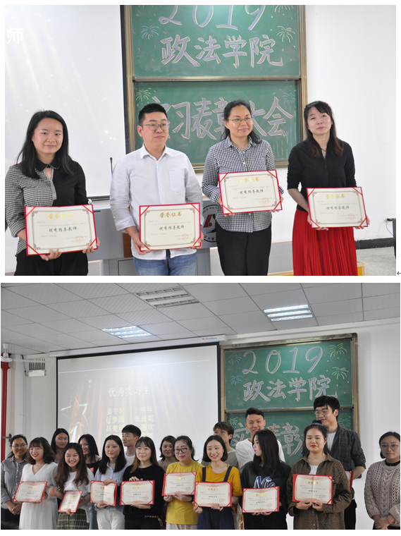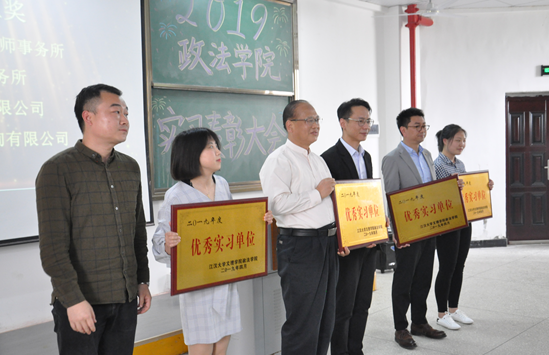大会进行了表彰颁奖,优秀实习单位为北京德和衡律师事务所、湖北弘愿律师事务所、武汉金拱门食品有限公司、武汉纽特斯特心理咨询有限公司;优秀实习指导老师为张卫容、薛洪涛、吴蕾、高琴;优秀实习生为温慧燕、周博淑、余梦华、陈琪滢、宋子琳、孙浩、罗琰子、胡福勤、姜宇轩、申琴、付梦圆、张俊妮、吕楚琛、惠欢、欧阳帆、林孟雨。