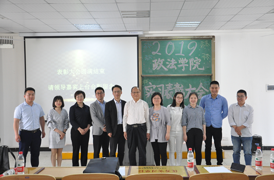 2019年4月24日下午13:30,江汉大学文理学院政法学院举办了“2019年度实习实践表彰大会”。出席本次大会的有北京德和衡(武汉)律师事务所党支部书记孙健律师、合伙人谭玉华律师、湖北弘愿律师事务所朱莉主任、周遥远律师、武汉金拱门食品有限公司高级人力资源顾问郑帆、袁霜、武汉纽特斯特心理咨询有限公司邵银、施娟娟、江汉大学文理学院政法学院院长李蔚、副院长陈海峰、综合办公室主任刘超、法学系主任张卫容、应用心理学系主任薛洪涛、学前教育系主任贺霞、各专业指导老师以及19届参与实习的同学。