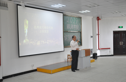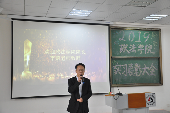 大会开始,政法学院院长李蔚代表政法学院对各优秀实习单位到本校指导工作表示热烈的欢迎,对实习单位给予学生实习的机会以及在学生实习的过程中加以指导表示由衷的感谢,对实习指导教师表示崇高的敬意,他们为学生联系了优质的实习单位,为学院实习实践工作作出了巨大的贡献,对19届应届毕业生表示衷心的祝贺,他们克服了许多困难,努力完成了实习工作,不仅得到了实习单位的赞赏,而且用自己的实际行动为政法学院带来了荣誉。接着,李蔚表示开展本次大会的目的是为了让其他学生向19届学生学习,学习他们在实习时勤奋好学踏实肯干的精神,让政法学院学子勤学实干的精神得以薪火相传。