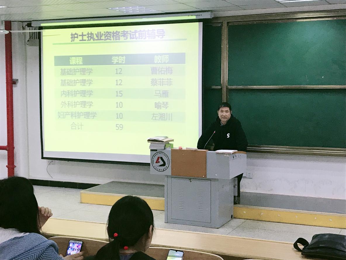 紧接着,艾永循院长发表讲话,他说,在毕业前,同学们要做好三件事:1.护士资格证考前辅导及考试;2.毕业考试及辅导;3.就业工作。他说,目前有49名学生已被武汉三甲医院录取,其他同学要努力,但不要攀比,要先就业再择业,学校定向班的就业兜底政策仍然有效。