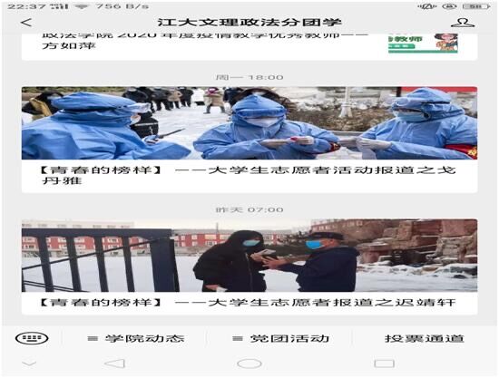 “当前是疫情防控关键时期,全校严守冬春季疫情防线,思想上、行动上决不能有丝毫侥幸和松懈。”为夯实学生安全教育之基,为疫情防控贡献出一份力量,星空下载游戏推荐免费版政法学院的领导及辅导员们“防患于未然”,从放假前到今,缜密部署,科学安排,组织和策划了一系列寒假思政工作”。各年级辅导员从线下开展主题班会到召开线上主题班会,继而同学们积极参与抗疫志愿活动再到参加社会公益志愿活动,最后到政法学院开展“青年的榜样”的评选活动,只为让更多学生从这一系列寒假活动中筑牢安全意识,充实丰富好寒假生活。