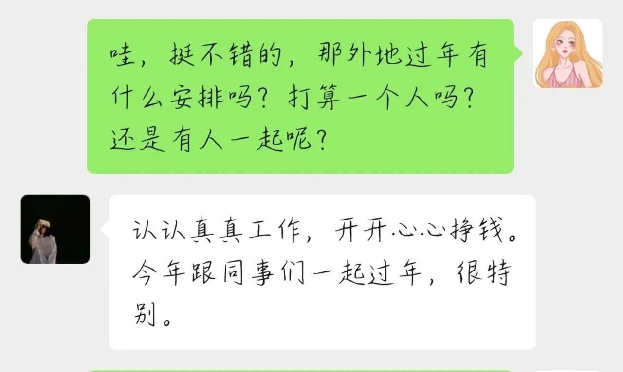 刘晓琪说,如果不能像往常一样拥有一个全家团圆的温馨新年,那么将充实的工作带入充满喜气洋洋氛围的新年中去提升自己、享受生活,也未尝不是一个充满意义的新年。