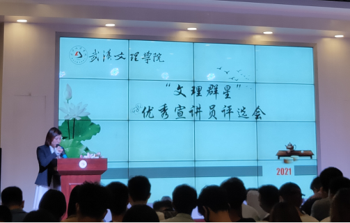 主持人学生处思政教育科科长程茜回顾了学校“文理群星”校园文化品牌建设的历史,对全校2021年“文理群星”宣讲活动的情况进行了介绍。随后,10名由各学院推荐的优秀宣讲员逐一上台进行了精彩的宣讲,他们身上既有文理优秀学生的共性,又展现出不一样的风采。他们的讲述,让在座的老师们为能培养出这样优秀的学生而感动,让聆听的学生们树立起更高的目标和学习的榜样。