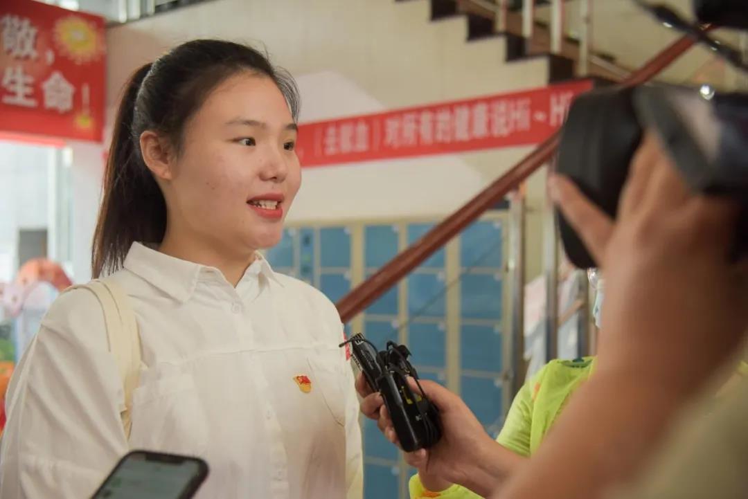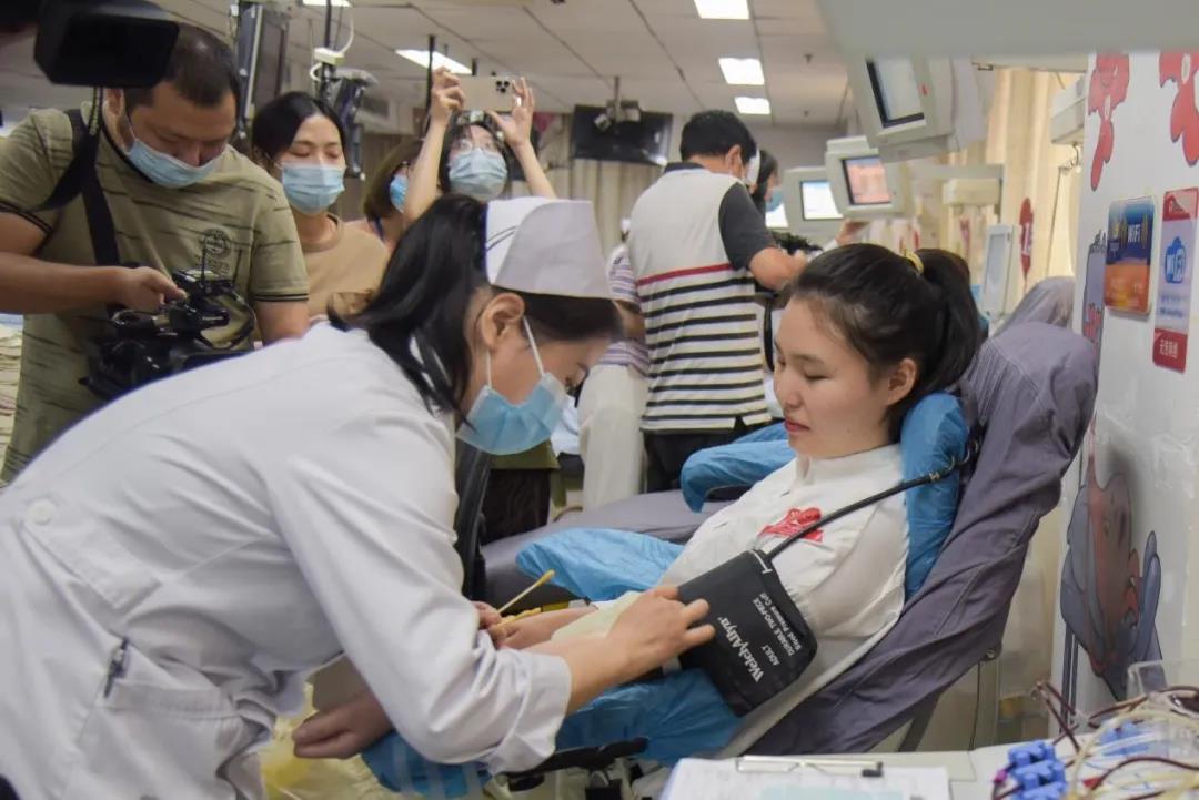 现场的多家媒体对她首次参加献血,献礼建党一百周年的行动非常关注,全程对她进行了跟拍记录与采访。