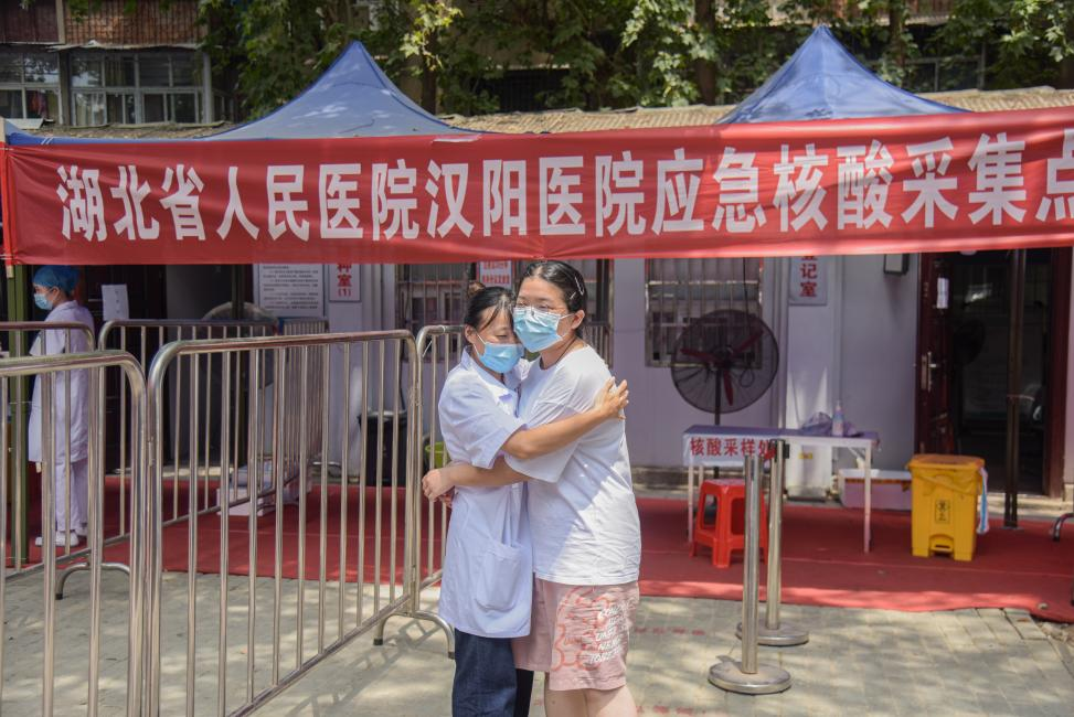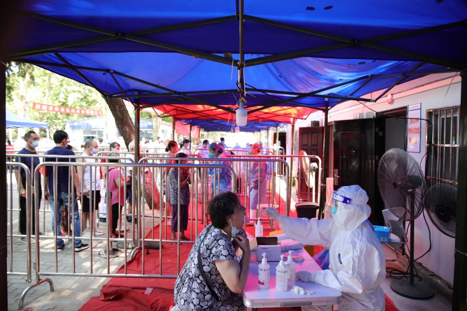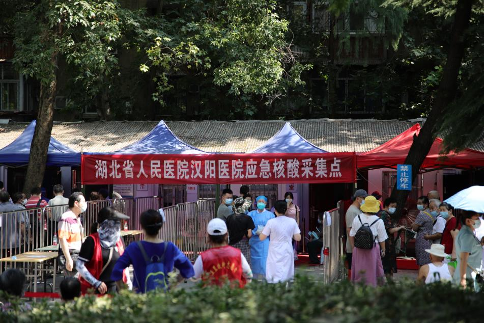 清晨,阳光撒在省人民医院汉阳医院核酸检测点,武汉又开启了一天的“烧烤”模式。8月6日是武汉市全民核酸检测的第三天,和前两天的长龙比起来,窗口排队的人明显减少。