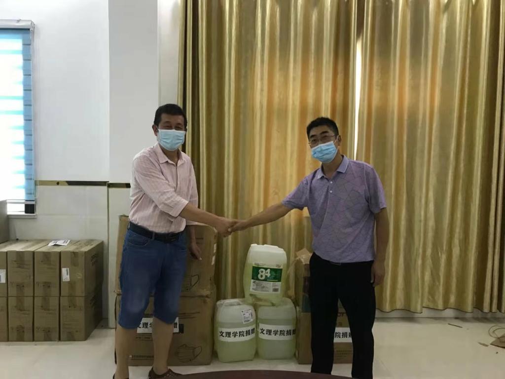 8月初,在房县疫情防控形势最吃劲的情况下,驻村工作队紧急商议,报校领导批准,为当地捐赠8000只医用口罩、100瓶免洗手液、60公斤消毒液的防疫物资。
