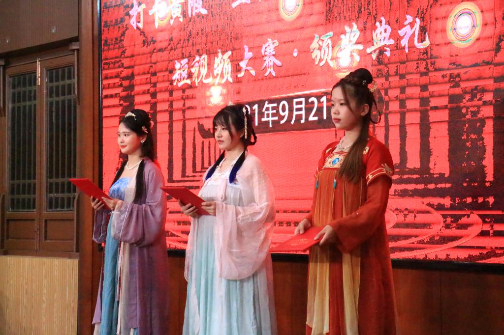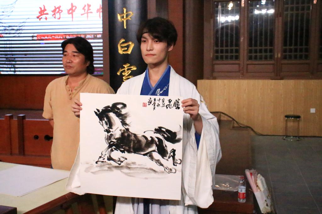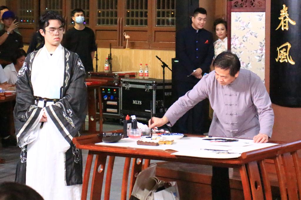 临近活动开始,举办方组织了国家非遗项目传承活动,学校秦风汉服社为到场嘉宾展示了庄重典雅的汉服文化礼仪展示活动。