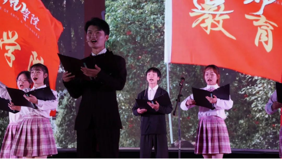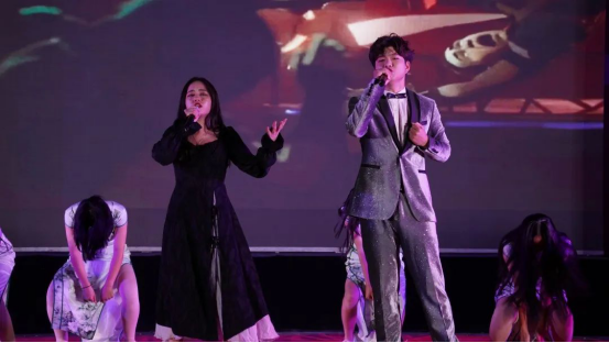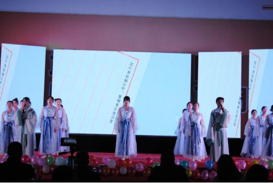 当熟悉的诗句被唱作歌曲,翩跹舞姿与男女对唱,歌伴舞《琵琶行》将全场师生带入荻花丛边,移船相近邀相见,只听歌声如大珠小珠落玉盘。
