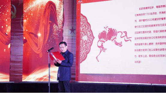 主持人上台宣布教育学院2022年“情系教育,执梦远航”元旦晚会正式开始!