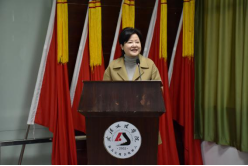 新当选学校工会主席李彩琴发言