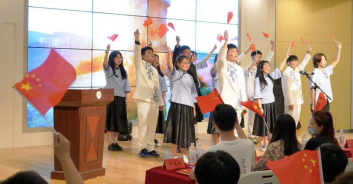 著名作曲家王莘创作的《歌唱祖国》已经在几代人中间激昂传唱,明快雄壮的歌曲经过同学们饱含深情的演绎,将几代人对党、对国家的深切热爱娓娓道出,感染着现场每一位观众,大家忍不住站立起来放声合唱,跟随台上的表演者挥舞着手中的国旗。
