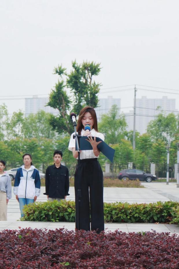 人文艺术学院20级网新2班何丽娟作为学生代表在国旗下讲话。她在讲话中说到,华夏展风采,青春正当时,谱写新时代的青春之歌需要新时代青年勇担大任,无畏向前,以青春之光照亮祖国的明天。