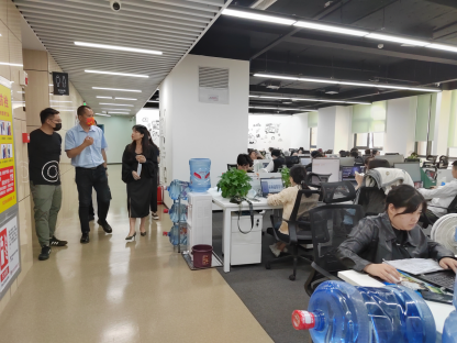 赵学迅书记一行首先前往湖北嘉讯传媒有限公司,公司王经理带领大家进行参观,并在座谈会上介绍了公司的发展历程、企业文化、业务流程以及人才需求等情况。