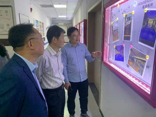 艾永循副校长和外国语学院陈维良院长参观万豪酒店企业管理及文化展示区