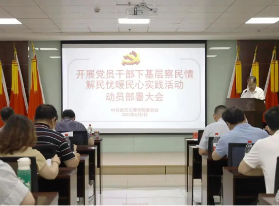 为了贯彻落实省委教育工委、省教育厅印发《关于开展党员干部下基层察民情解民忧暖民心实践活动的实施方案》的通知(鄂教工委[2022]8号)和《中共湖北省委办公厅印发的<关于推动党史学习教育常态化长效化的意见>的通知》(鄂办发[2022]11号)精神,根据全省教育系统动员部署会要求,结合我校实际,6月2日,我校在行政楼811会议室召开党员干部下基层察民情解民忧暖民心实践活动部署大会。全体校领导、全校副处级以上领导干部、各学院综合办公室(副)主任参加了此次会议,由校党委书记杨知勤主持会议。