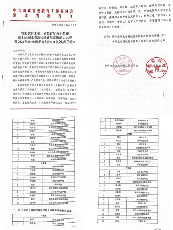 辅导员是一所大学宝贵的财富,他们直面学生,他们肩负重任。他们的身份不但应该是思政教师,也应该是管理干部,更应该是学生专家。我校充分认识到辅导员队伍于学生培养的重要性,将辅导员队伍的培养列入专项工作计划,2022年取得了突破进展。