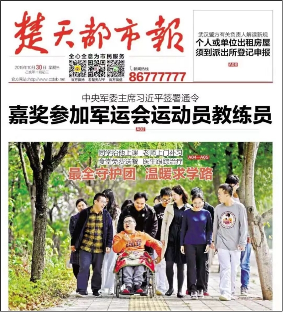 2020年胡泽阳同学被评为全国“自强之星”,他在多个场合感谢学校,感谢项亭老师带领的团队里近40名护理学专业学生对他的照顾。