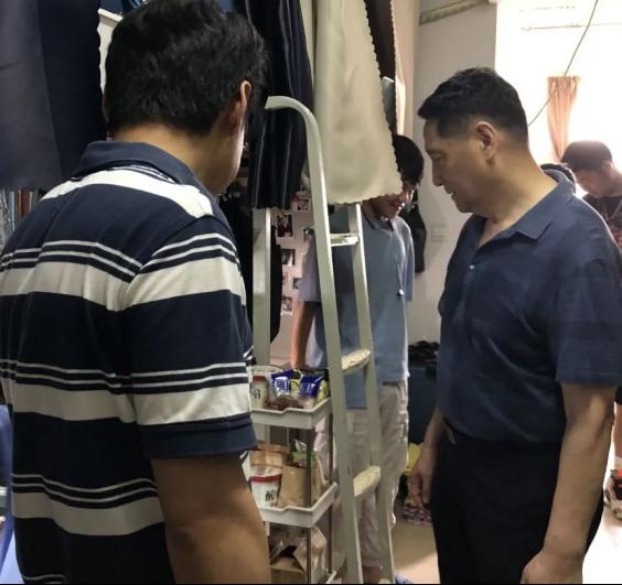 紧接着走访政法学院学生宿舍,深入了解学生生活环境,加强宿舍清洁卫生并进行仔细检查,叮嘱同学们要营造积极健康的宿舍文化。刘校长对政法学院教学设施给予了肯定,提醒同学们要合理安排时间,在认真学习的基础上,积极参加社会实践活动。同时刘校长着重强调要提高个人疫情防控意识,做好常态化疫情防控措施。在注意疫情防控的同时也要注意其他身体健康问题,在夏天需要多注意蚊虫叮咬与中暑等问题。宿舍走访拉近了院领导与学生之间的距离,给同学们带来温暖的人文关怀,让宿舍真正变成一个文明有爱、安全温暖的大家庭。