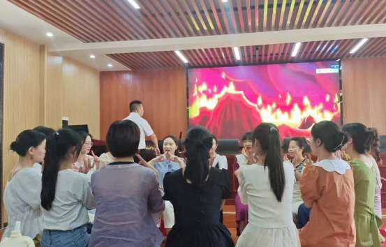 贺霞老师主要围绕农村幼儿园家园共育及小学道德教育开展了两场专题讲座,结合农村地区幼儿园与家庭教育的特点,指导幼儿教师们如何做好家园共育的实践工作。培训现场反响热烈,老师们积极主动地进行互动交流。