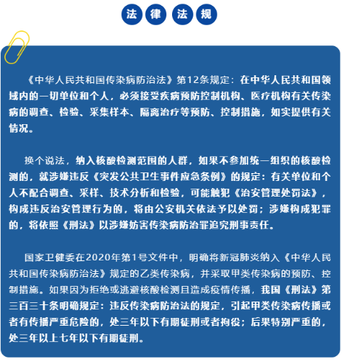 无论是拒不参与核酸检测,还是顶替他人做核酸,都将被依照上述法条追究责任!