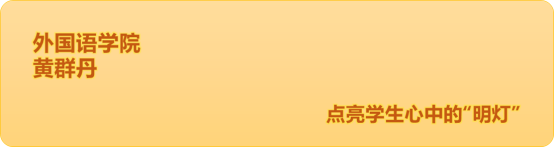 黄群丹老师从教十二年,一直秉承“学高为师,德高为范”的信条,全心全意诠释教书育人的使命,点亮学生心中的“明灯”,努力成为学生树立理想信念、刻苦学习、奉献祖国的引路人。她潜心钻研,学翻译、做翻译、教翻译,探索合适的教学方法,不断历练和提升专业本领。