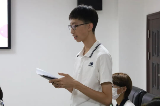 人文艺术学院22级新闻传播学专业禚宇乔作为新生代表发言,他讲到,抵达武汉的那个晚上,由于突然的疫情影响,是人艺学院熊海洋书记和卢出农主任专程开车到封控的卡口迎接,帮忙拿行李并安排住宿,直至凌晨老师们才得以休息,这让他深深感受到了学校的温暖。