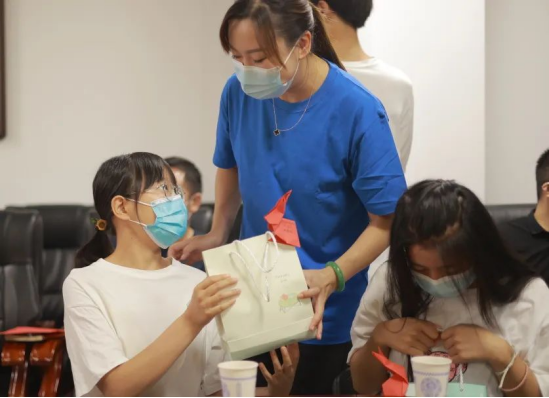 最后,校领导向同学们发放中秋慰问礼品。礼包中一个个美味的月饼、一张张手折的玉兔、一封封亲手书写的祝福卡片都包含着学校对同学们深深的节日祝福。