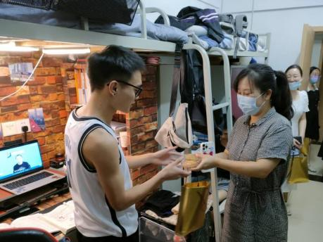 值此佳节,政法学院政法学院教学副院长陈海峰,行政副院长张晓,综合办公室主任谢琦以及19级辅导员谢红炼、20级辅导员韩思慧、21级辅导员胡金成、22级辅导员杨云燕为政法学院全体同学送去了香甜的月饼,祝大家中秋节快乐,同学们齐声回应老师“双节快乐”!